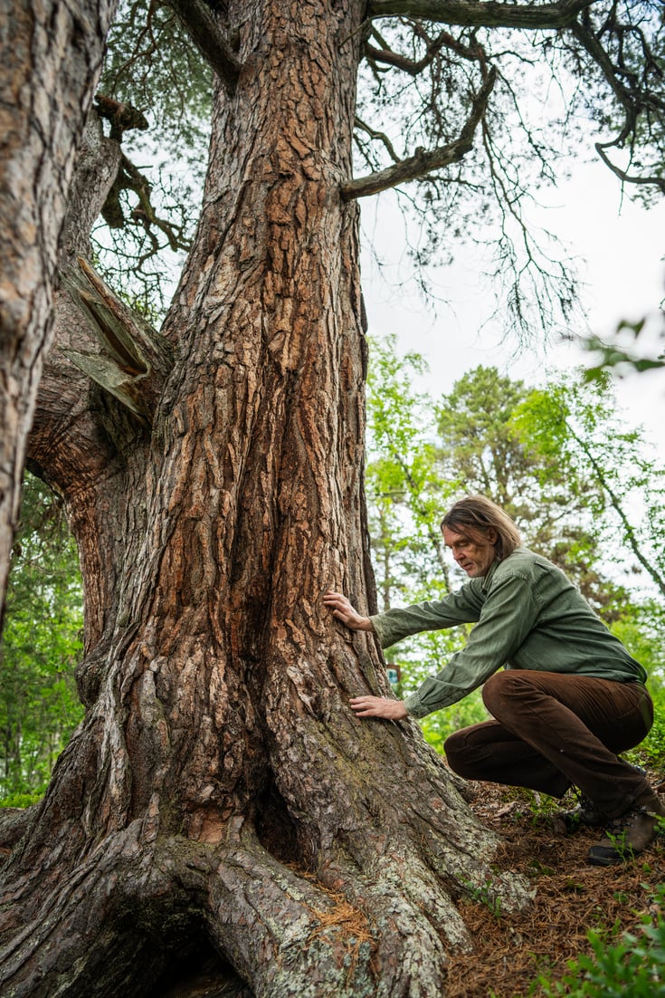 Til slutt går vi helt inntil. Morten Gåsvand legger hendene mot stammen.