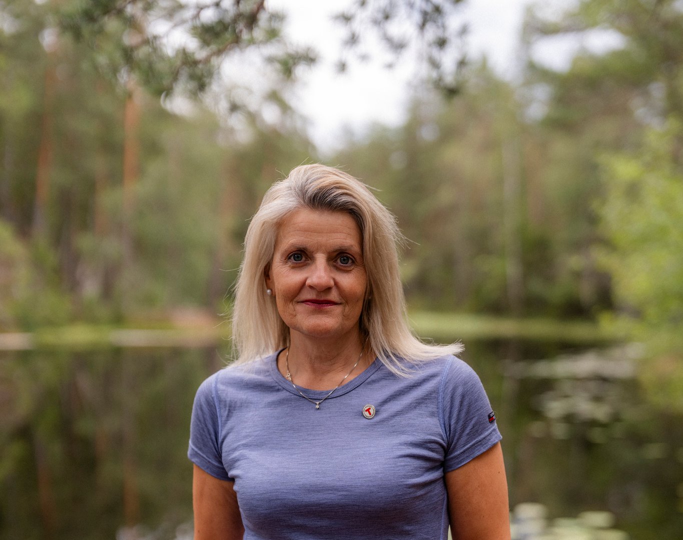 Den Norske Turistforenings nyansatte generalsekretær ler en smittende latter og viser vei innover i de dype skoger.