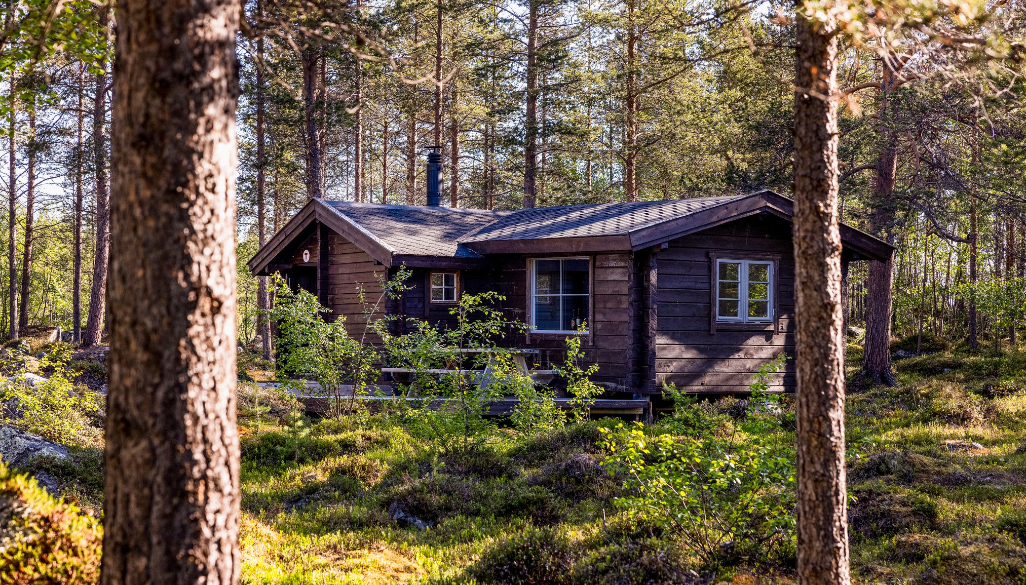 I skogen, 100 meter fra innsjøen ved navn Lille-Sameti, låser jeg opp hyttas hoveddør med spesialnøkkel. Bjørnhytta kan nemlig bare leies som hel enhet. Det gir deg ditt eget luksusliv her i skogen. Bare du og natur en.