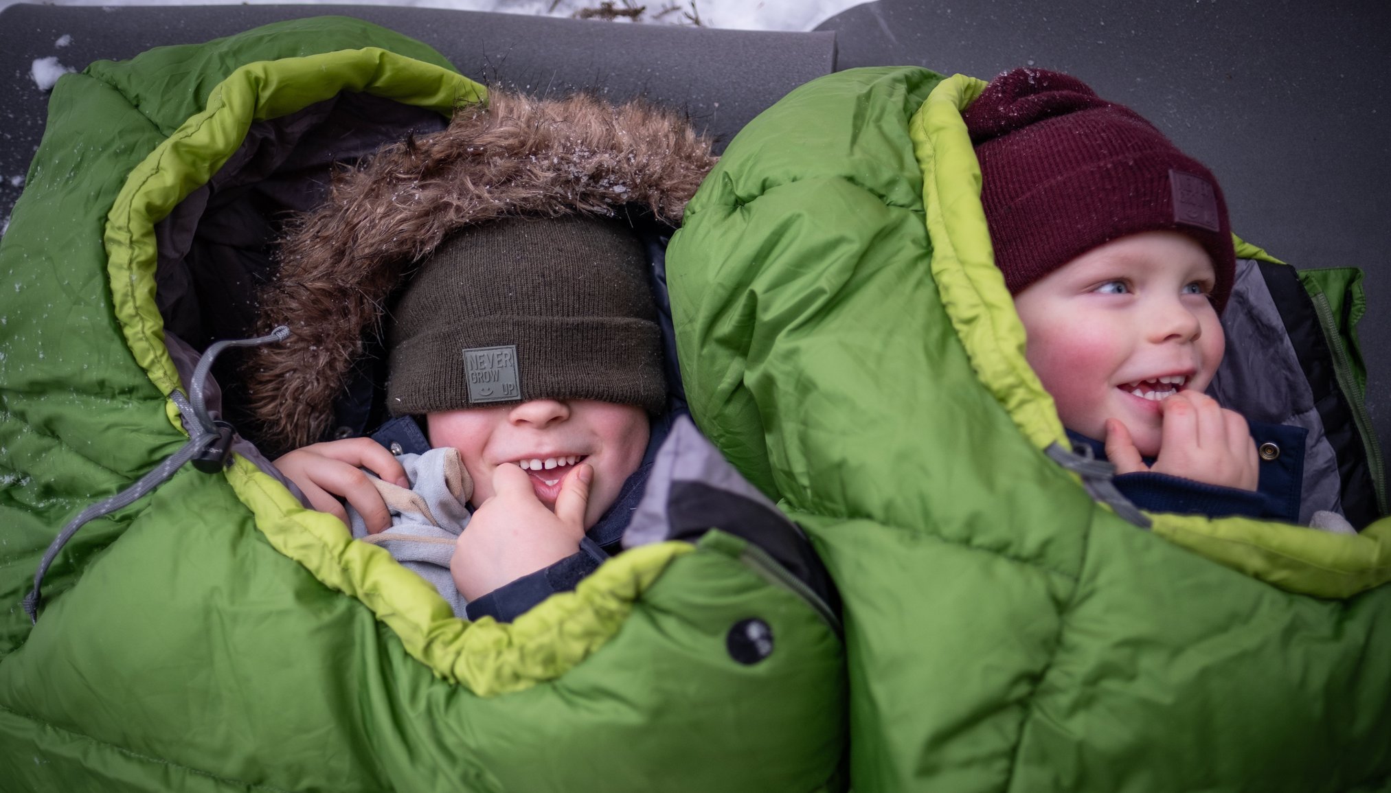 → En pose å plassere mini inni. Vognposen fra barnevogna? Helt topp for de minste. En gammel voksenpose? Det går bra, men snurp den gjerne sammen i lengden, da blir den lettere å varme opp for en liten kropp. Den ideelle soveposen å herje seg gjennom barndommen med? Den er foret med syntetisk materiale (ikke dun) og den kan utvides i lengden etter hvert som barnet vokser. Om du supplerer hiet med mat og varm drikke, kan det faktisk hende at du får roe ned en stund, du også.