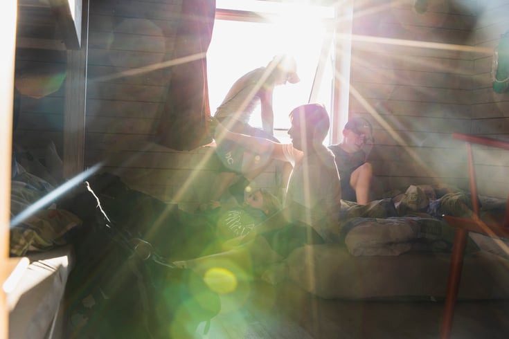 Barn og tenåringer løper rundt hytteveggene, de hopper fra stein til stein, leker på flekker av snø. Så går de på hemsen, slenger seg nedpå madrasser og senger. Fniser og scroller.