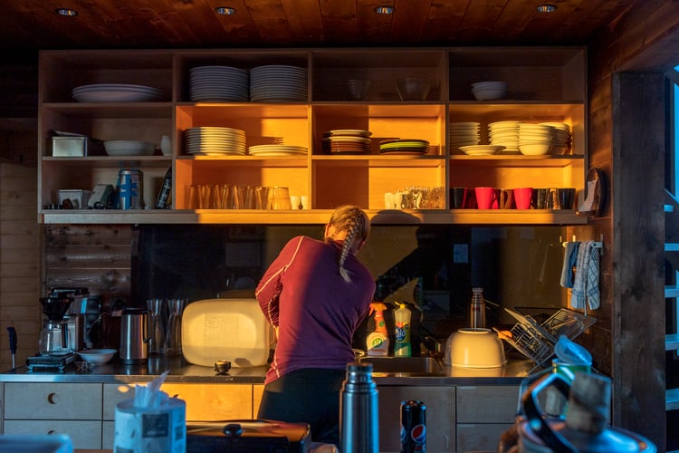 "Nå er tacoen ferdig!", ropes det fra foreldre på felleskjøkkenet inne på Rabothytta. Barna strømmer til og stiller seg i kø.